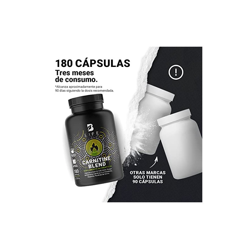 🌟 ⭐ Carnitina de 180 Cápsulas con Café Verde, Carnitina, Vinagre de Manzana, CLA y Picolinato de Cromo. Carnitine Blend B Life. ⭐ 🌟