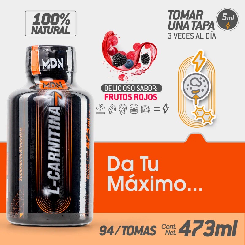 Carnitina Líquida Quemador de Grasa MDN Sports 473 ml Sabor Frutos Rojos