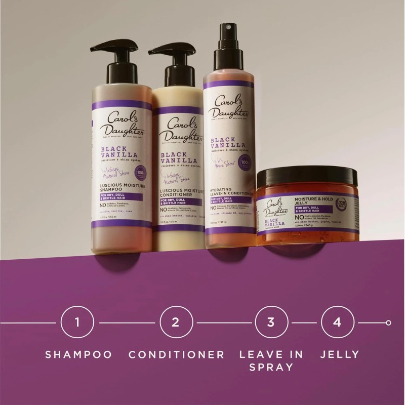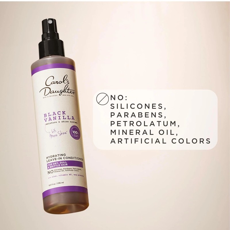 - Detangling Hair Care: After Black Vanilla Shampoo and Conditioner, hold leave in conditioner for dry damaged hair 6-8 inches from hair and spray all over. Use on wet or dry hair. Do not rinse. Follow with Black Vanilla Hair Oil for moisture and shine