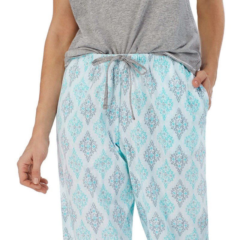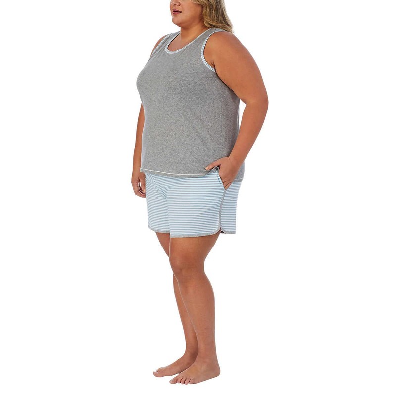 Carole Hochman Women's 4 Piece Pajama Set - Tank Top, Short Sleeve Top, Short, and Capri Pant (Medium, Grey-blue)