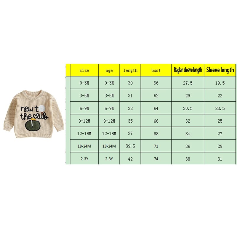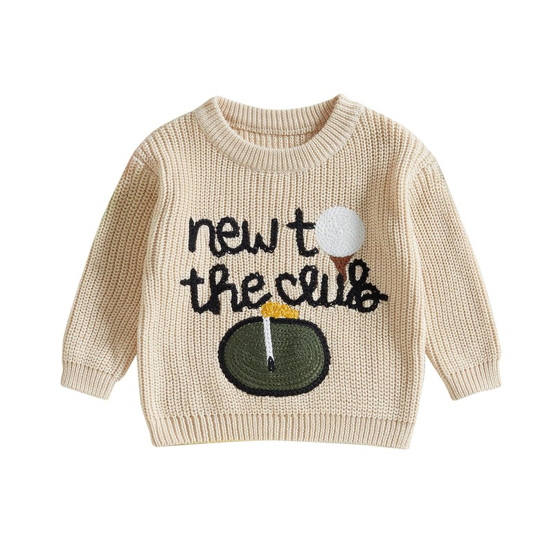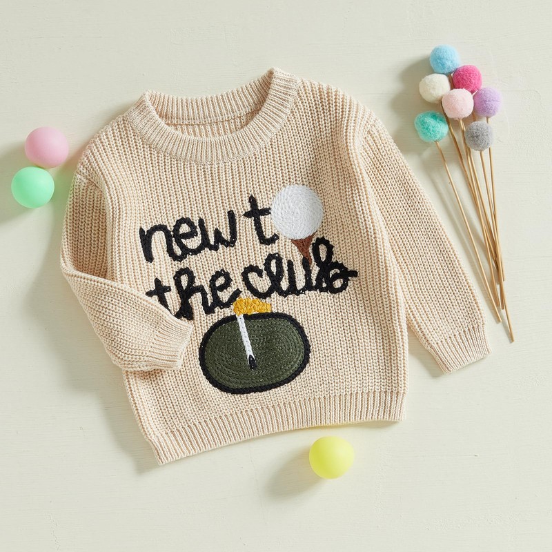Toddler Baby Fall Sweater Golf Letter Embroidery Long Sleeve Crew Neck Knitwear Pullover