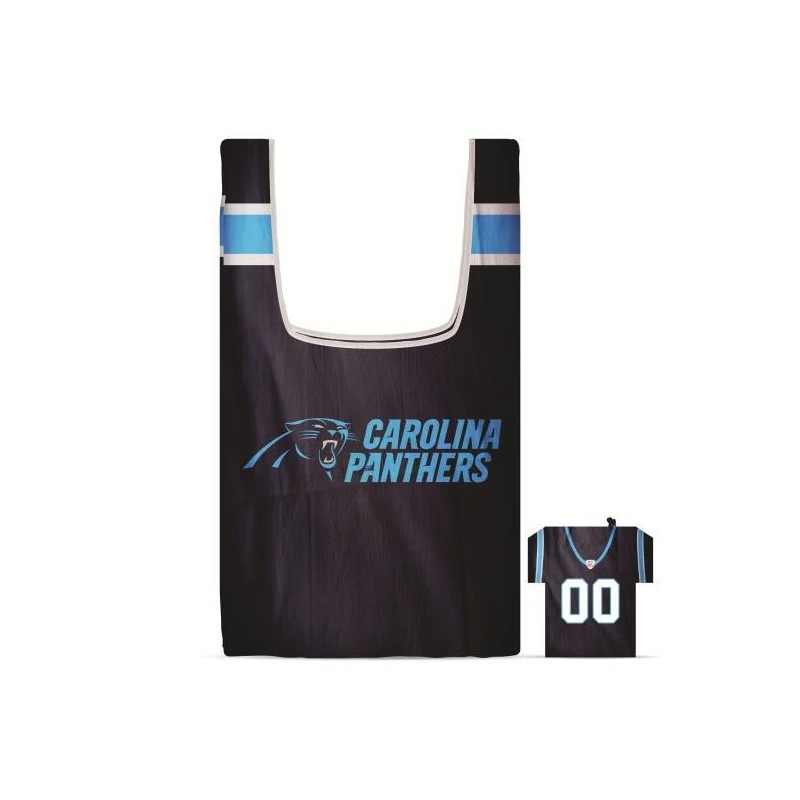 Carolina Panthers Bag In A Pouch This eco-friendly bags are engineered from durable polyester fabric featuring 192 threads per inch. They also feature screen-printed logos to show your support for your favorite teams while supporting the environment. Replace messy conventional shopping bags with these compact bags in your car, purse, or backpack. Jersey-style shopping bags are color coordinated with the pouch in matching team colors, and are made to resemble your favorite team uniforms. Dimensions - As Bag: 15""(l) x 5.25""(w) x 15.5""(h) - As Pouch: 3.5""(l) x 1.5""(w) x 4.5""(h). Makes a great gift for any Panthers fan!