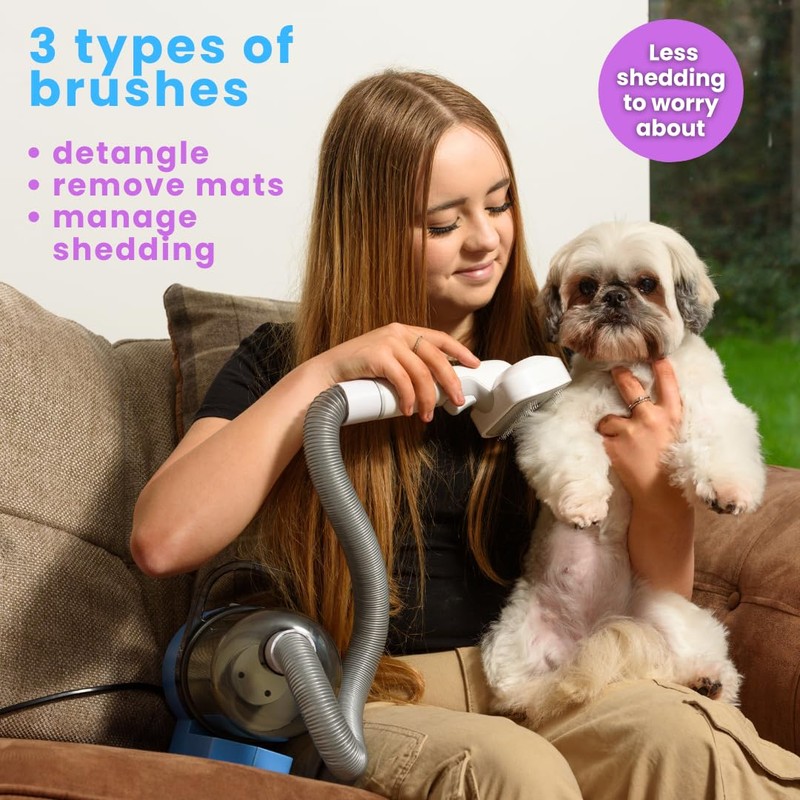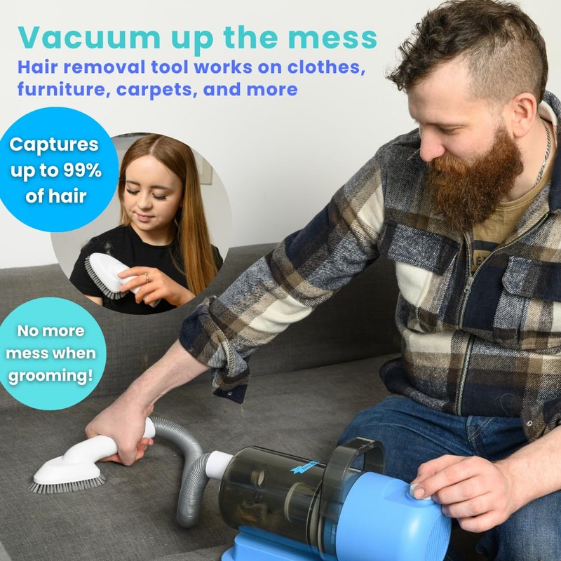 Carolina Pets Pet Grooming Kit for Dogs & Cats, with Vacuum, Removes up to 99% of Hair, Brushes and Clippers, Low Noise, with Gradual Speed Adjustment, Blue