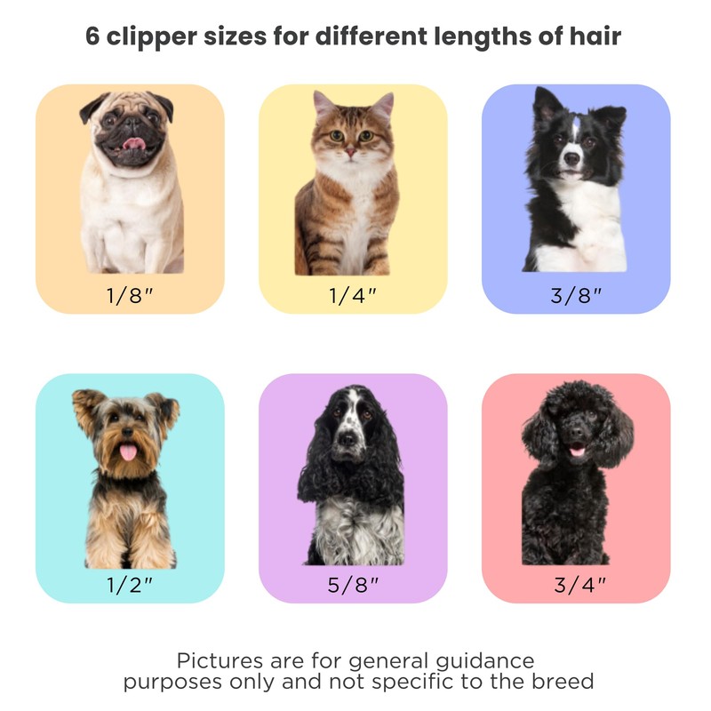 - 【TAILORED TO EVERY COAT】: Our grooming kit is optimized for every hair type. Choose from a selection of nylon combs, stainless-steel clippers, or scissors, to trim your pet’s fur with precision. Whether your furry companion has short, medium, or long hair, you can achieve the perfect length. Select from a range spanning almost 1/8 inch to nearly 3/4 inch to fit your pet’s needs.