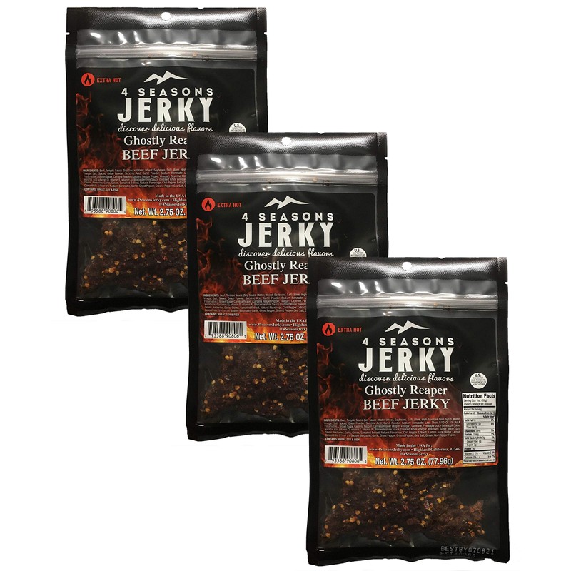 Carolina Reaper Ghost Pepper Beef Jerky - 3 Pack - by 4 Seasons Jerky - Spicy Snack - Carne Seca