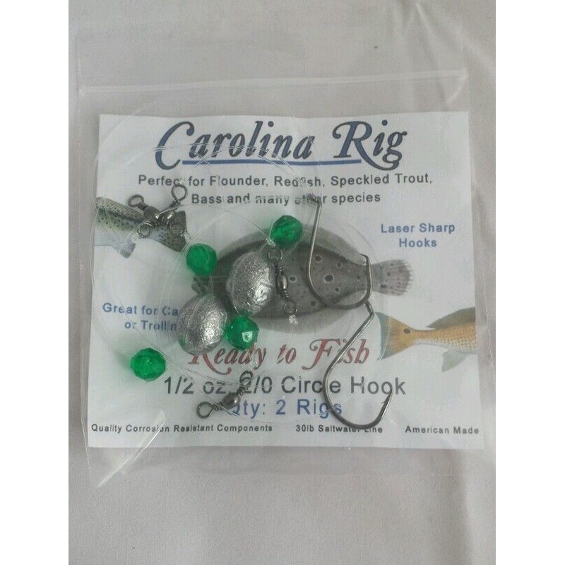I fish this exact rig about 100 days a year for Flounder, Redfish and Sea Trout (Specks) tipped with live mullet, mud minnows, shrimp, cut bait or soft plastics. This is the most productive rig in my box. These are the perfect inshore rigs but are versitale enough to be used for countless species in salt and fresh water. Great for casting or trolling. Hand tied 30lb big game saltwater line aprox. 24" total length w 2/0 circle hooks, 3/4 oz. lead egg sinker and two #8 saltwater swivels. This rig catches fish!
