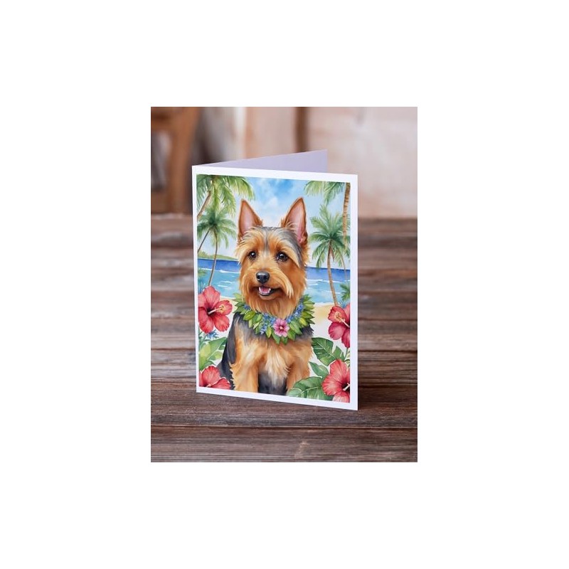 Caroline's Treasures Australian Terrier Luau Greeting Cards Pack of 8 Blank Cards with Envelopes Whimsical A7 Size 5x7 Blank Note Cards