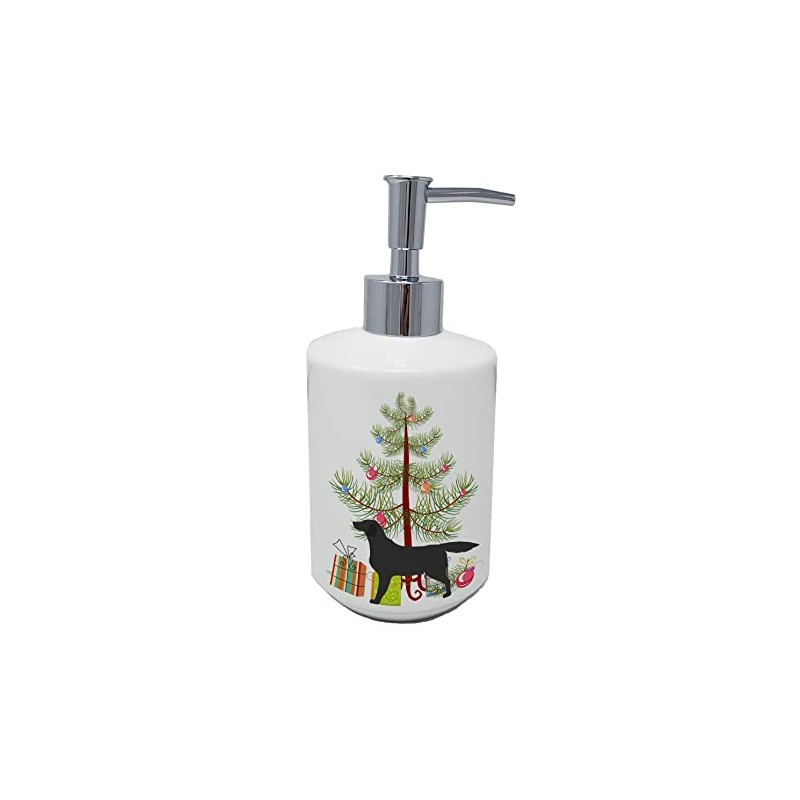 Caroline's Treasures BB2926SOAP Black Labrador Retriever Merry Christmas Tree Ceramic Soap Dispenser Hand Soap Dispenser Pump Bottles for Bathroom Kitchen, Empty Refillable Liquid Soap Container