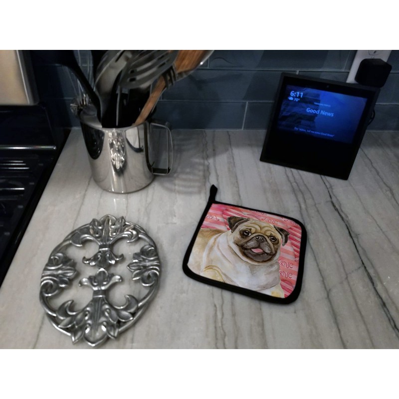 Caroline's Treasures BB9805PTHD Fawn Pug Love Pair of Pot Holders, Red Kitchen Heat Resistant Pot Holders Sets Oven Hot Pads for Cooking Baking BBQ, 7 1/2 x 7 1/2