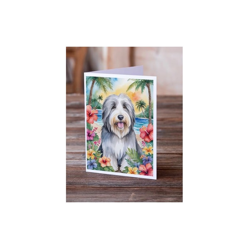 Caroline's Treasures Bearded Collie Luau Greeting Cards Pack of 8 Blank Cards with Envelopes Whimsical A7 Size 5x7 Blank Note Cards