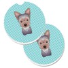 Caroline's Treasures Checkerboard Blue Yorkie Puppy Set of 2 Cup Holder Car Coasters BB1170CARC, 2.56, Multicolor