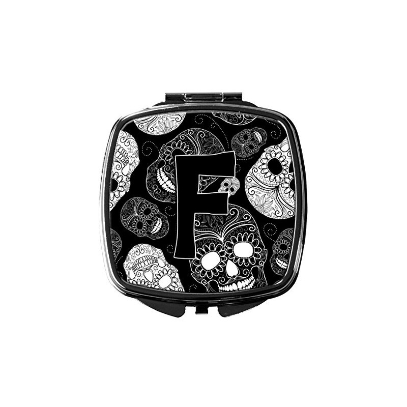 Caroline's Treasures CJ2008-FSCM Letter F Day of The Dead Skulls Black Compact Mirror, Multicolor