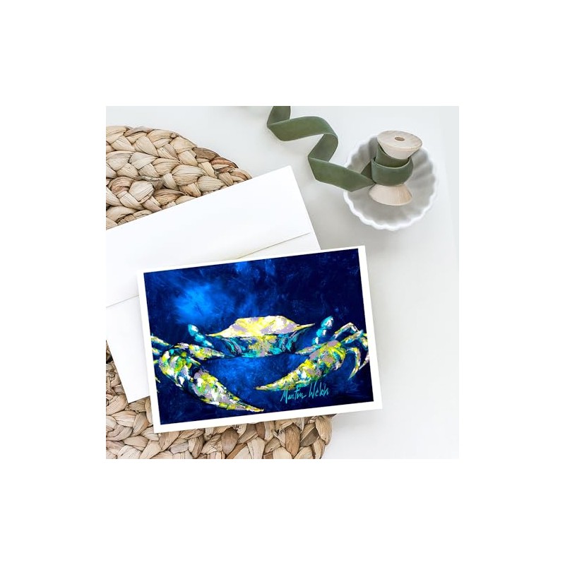 Caroline's Treasures Crab Blue Greeting Cards Pack of 8 Blank Cards with Envelopes Whimsical A7 Size 5x7 Blank Note Cards
