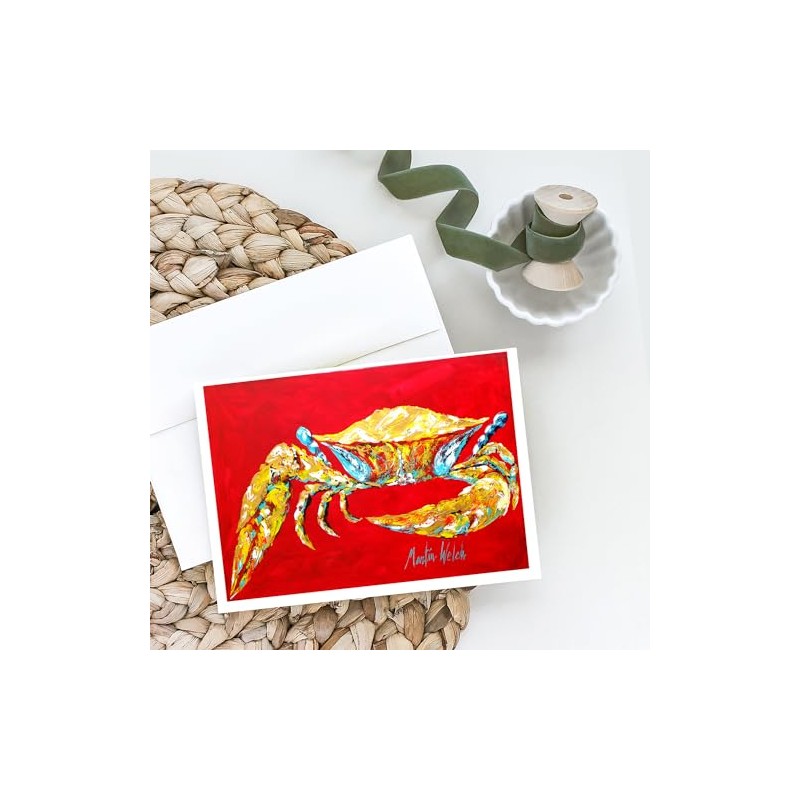 Caroline's Treasures Crab Blue on Red, Sr Greeting Cards Pack of 8 Blank Cards with Envelopes Whimsical A7 Size 5x7 Blank Note Cards