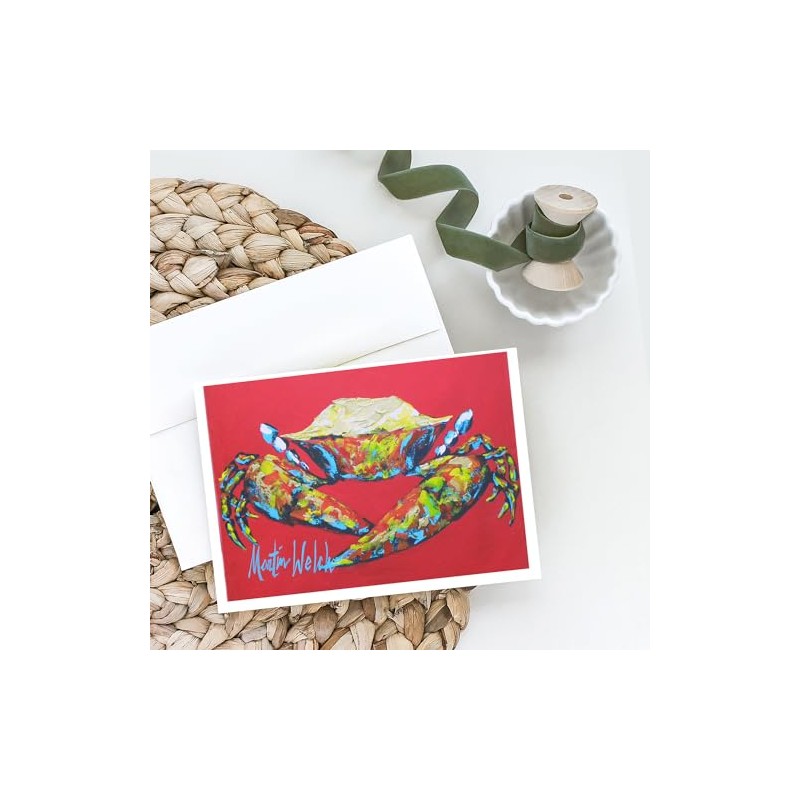 Caroline's Treasures Crab Seafood One Greeting Cards Pack of 8 Blank Cards with Envelopes Whimsical A7 Size 5x7 Blank Note Cards