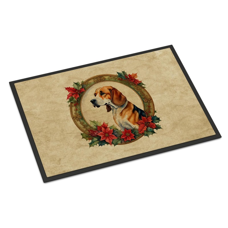 Caroline's Treasures DAC2303JMAT American Foxhound Christmas Flowers Doormat Front Door Mat Indoor Outdoor Rugs for Entryway, Non Slip Washable Low Pile, 24H X 36W