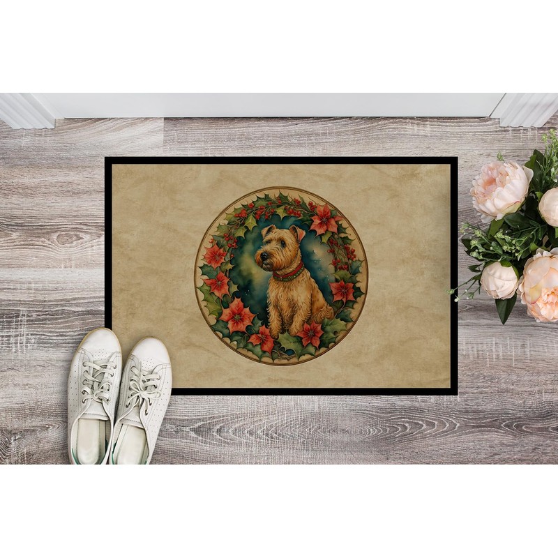 Caroline's Treasures DAC2389MAT Lakeland Terrier Christmas Flowers Doormat Front Door Mat Indoor Outdoor Rugs for Entryway, Non Slip Washable Low Pile, 18H X 27W