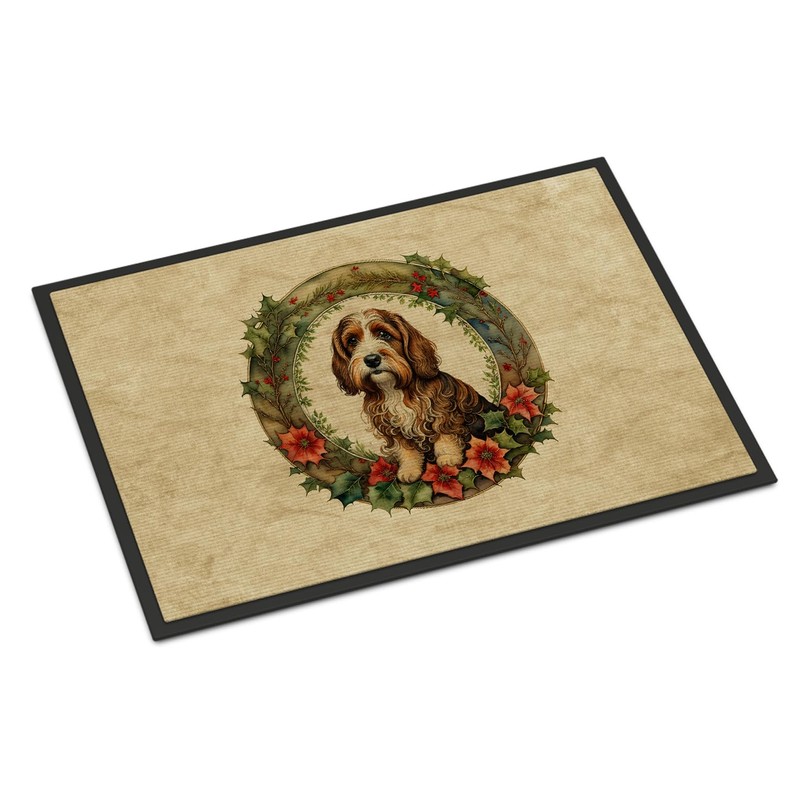 Caroline's Treasures DAC2405MAT Petit Basset Griffon Vendeen Christmas Flowers Doormat Front Door Mat Indoor Outdoor Rugs for Entryway, Non Slip Washable Low Pile, 18H X 27W