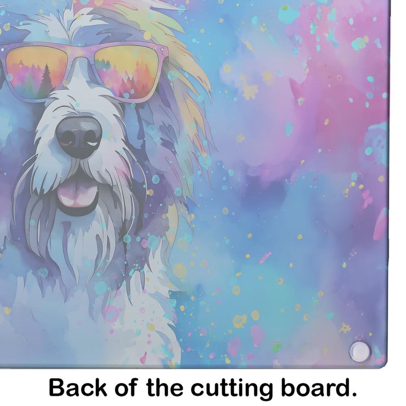 Caroline's Treasures DAC2534LCB Old English Sheepdog Hippie Dawg Glass Cutting Board Large Decorative Tempered Glass Kitchen Cutting and Serving Board Large Size Chopping Board