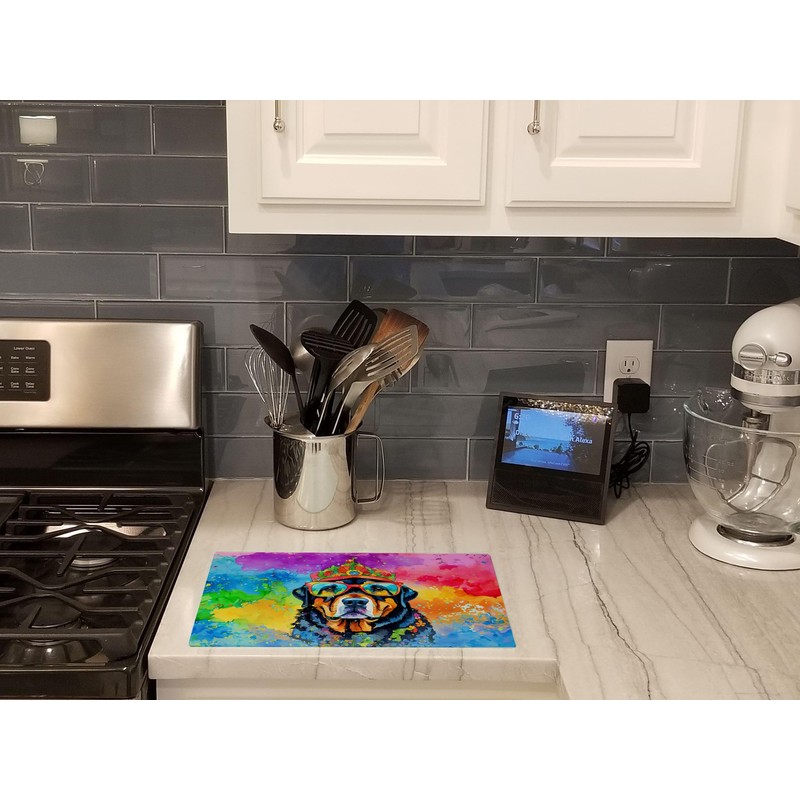 Caroline's Treasures DAC2547LCB Rottweiler Hippie Dawg Glass Cutting Board Large Decorative Tempered Glass Kitchen Cutting and Serving Board Large Size Chopping Board