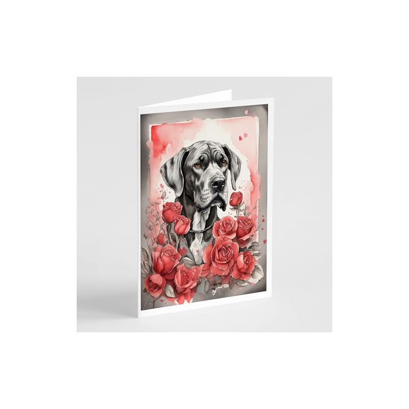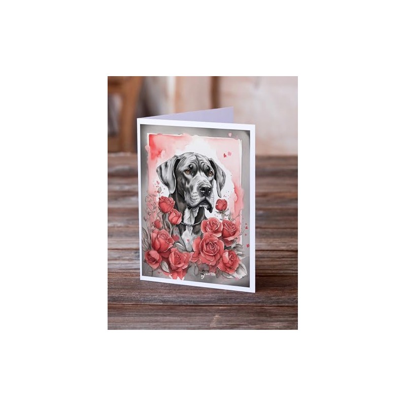 Caroline's Treasures DAC4457GCA7P Great Dane Valentine Roses Greeting Cards Pack of 8 Blank Cards with Envelopes Whimsical A7 Size 5x7 Blank Note Cards