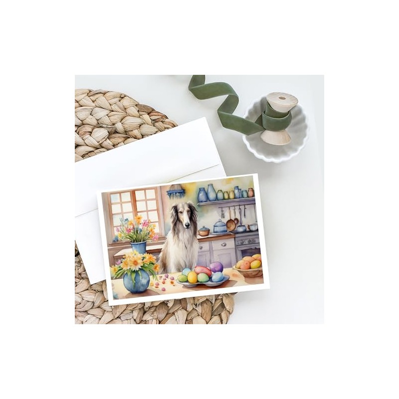 Caroline's Treasures DAC6769GCA7P Decorating Easter Borzoi Greeting Cards Pack of 8 Blank Cards with Envelopes Whimsical A7 Size 5x7 Blank Note Cards