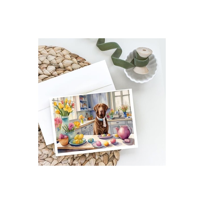 Caroline's Treasures DAC6786GCA7P Decorating Easter Chesapeake Bay Retriever Greeting Cards Pack of 8 Blank Cards with Envelopes Whimsical A7 Size 5x7 Blank Note Cards