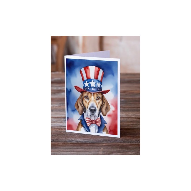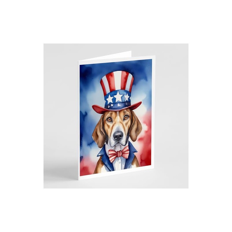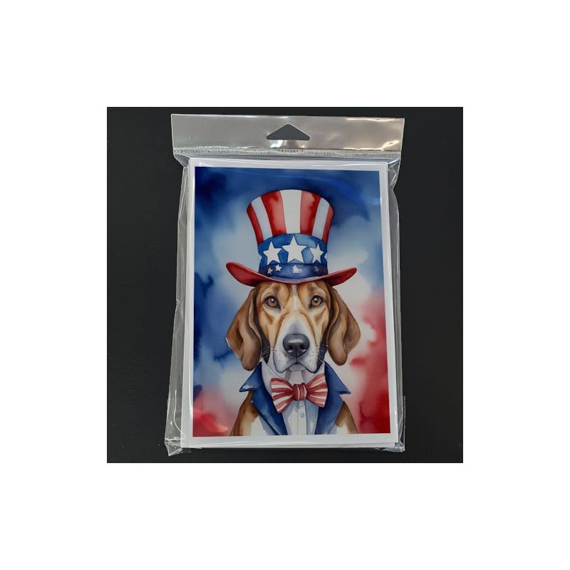 Caroline's Treasures English Foxhound Patriotic American Greeting Cards Pack of 8 Blank Cards with Envelopes Whimsical A7 Size 5x7 Blank Note Cards