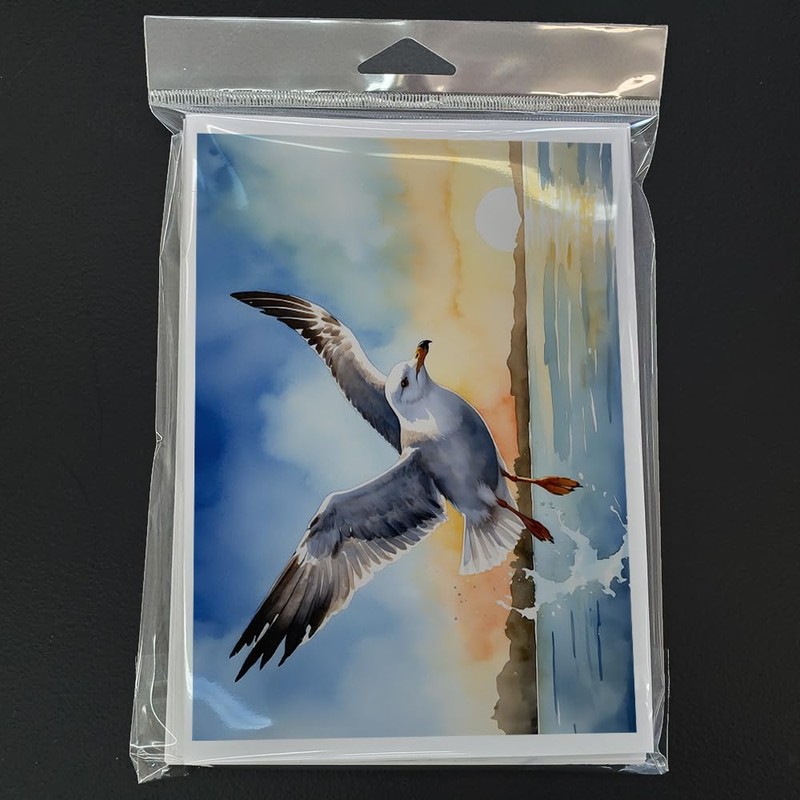 Caroline's Treasures Gull Flying Low Greeting Cards Pack of 8 Blank Cards with Envelopes Whimsical A7 Size 5x7 Blank Note Cards