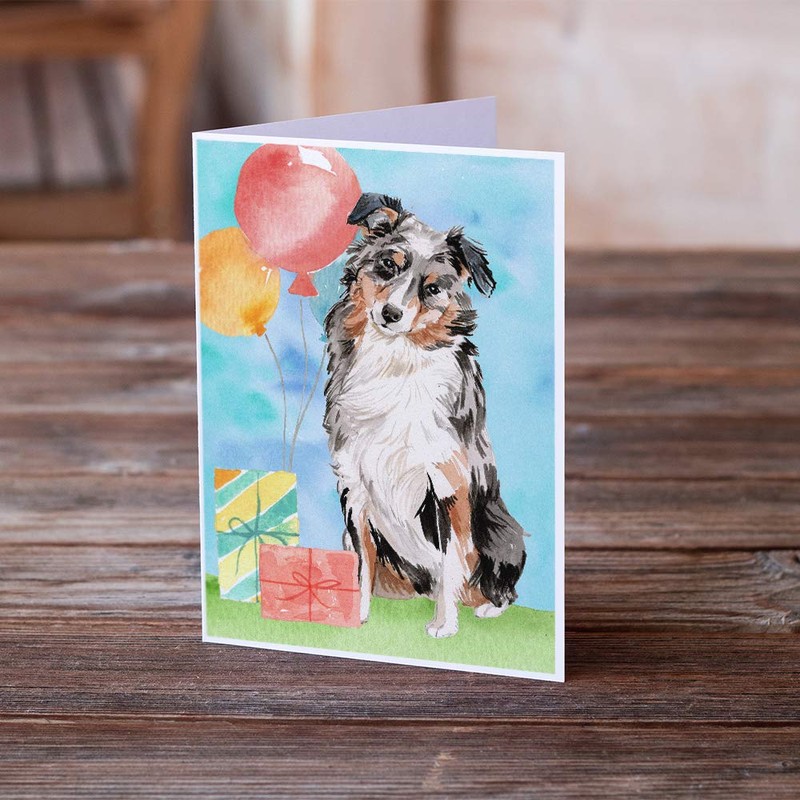 Caroline's Treasures Happy Birthday Australian Shepherd Greeting Cards and Envelopes Pack of 8