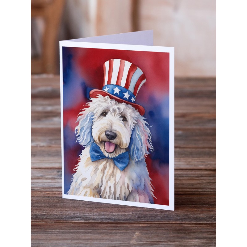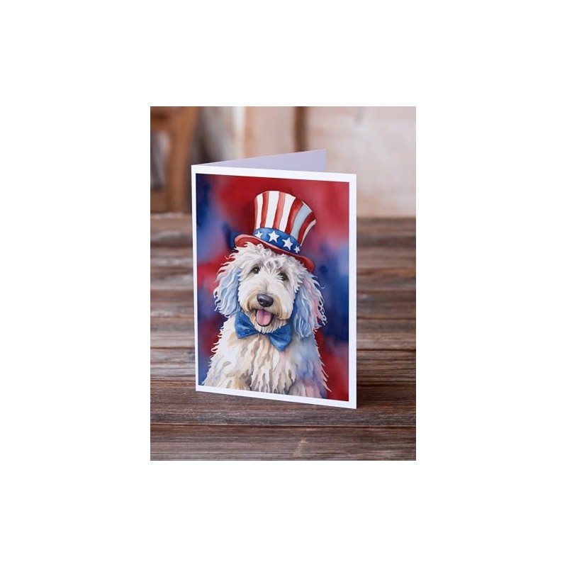 Caroline's Treasures Komondor Patriotic American Greeting Cards Pack of 8 Blank Cards with Envelopes Whimsical A7 Size 5x7 Blank Note Cards