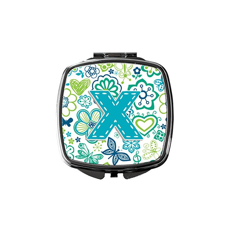 Caroline's Treasures Letter X Flowers and Butterflies Teal Blue Compact Travel Mirrors, Multicolor