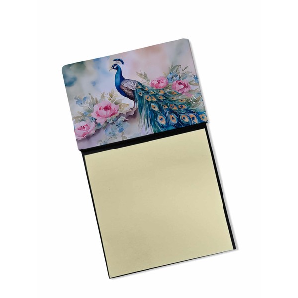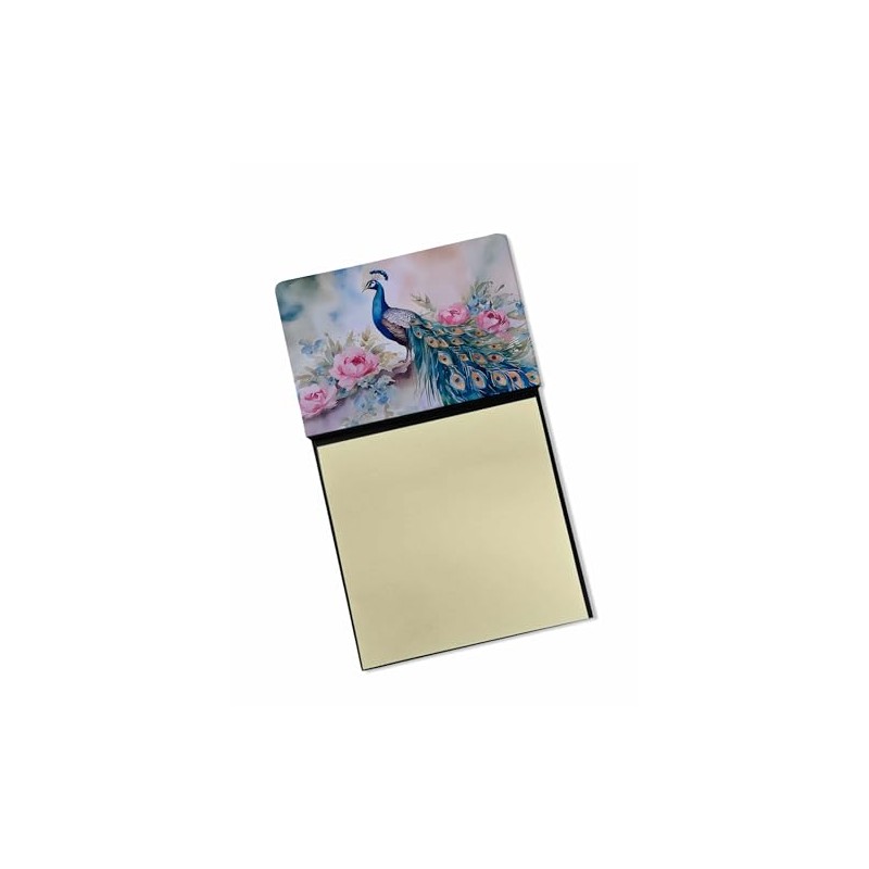 Caroline's Treasures Peacock Sticky Note Holder Refillable Dispenser Self-Sticky Note Pads, Memo Pads Blank Desk Accessories