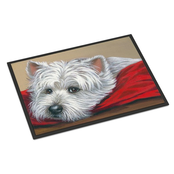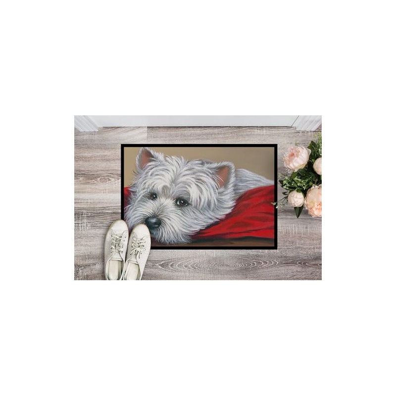 Caroline's Treasures PPP3284MAT Westie Red Pillow Doormat 18x27 Front Door Mat Indoor Outdoor Rugs for Entryway, Non Slip Washable Low Pile, 18H X 27W