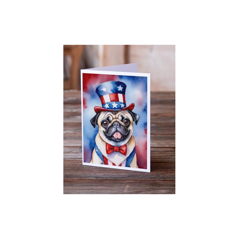 Caroline's Treasures Pug Patriotic American Greeting Cards Pack of 8 Blank Cards with Envelopes Whimsical A7 Size 5x7 Blank Note Cards