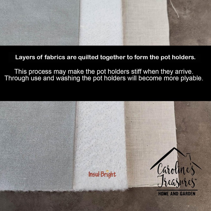 - The bottom layer is made from a silver heat resistant layer. These cloth pot holders make a great hostess gifts, camper pot holders, or house warming gift.
