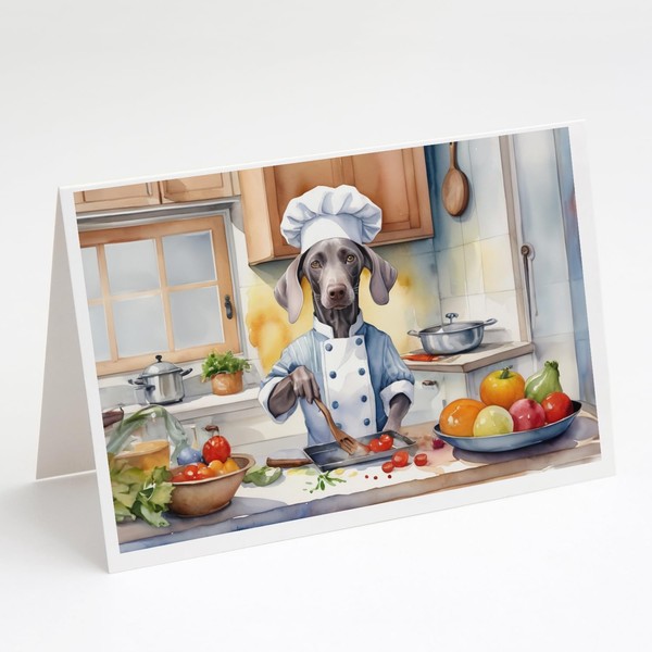 Caroline's Treasures Weimaraner The Chef Greeting Cards Pack of 8 Blank Cards with Envelopes Whimsical A7 Size 5x7 Blank Note Cards