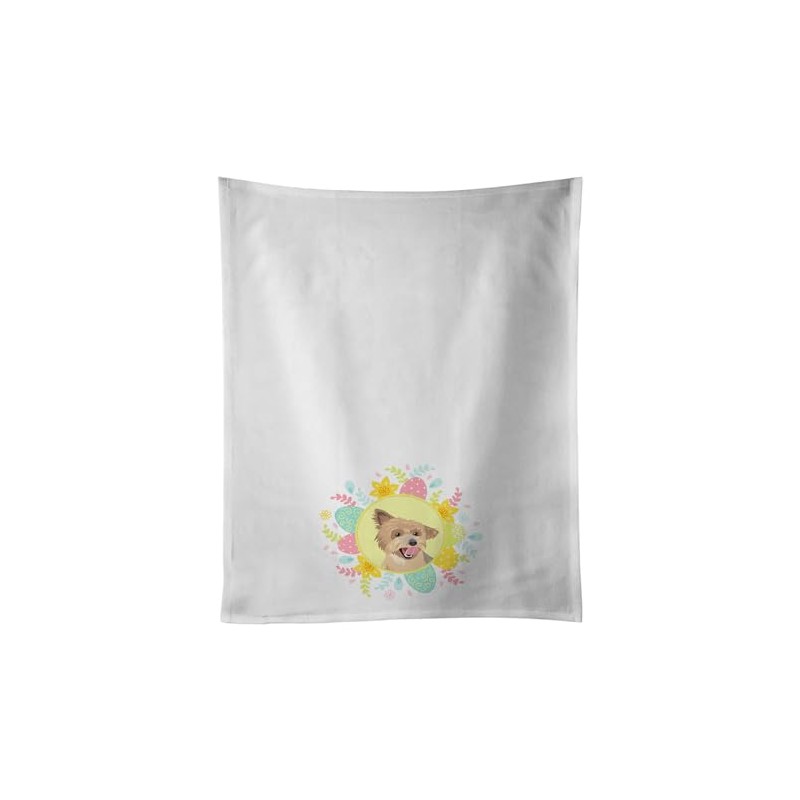 Caroline's Treasures Yorkie Blue and Gold Easter White Kitchen Set of 2Kitchen Cotton Hand-Towels