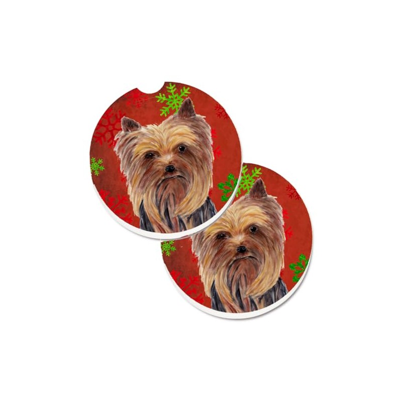Caroline's Treasures Yorkie Red & Green Snowflakes Holiday Christmas Set of 2 Cup Holder Car Coasters, 2.56, Multicolor