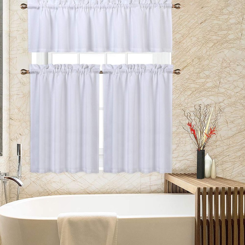 CAROMIO Cafe Curtains 36 Inch Length, Waffle Woven Textured Short Tier Curtains for Kitchen Cafe Bathroom Window Curtains, White