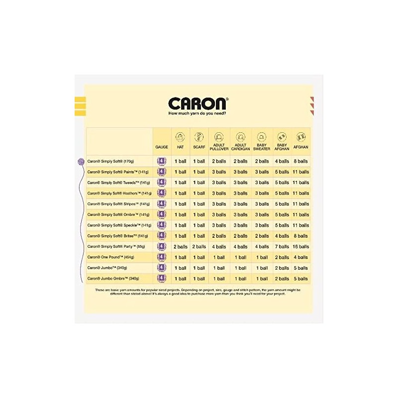 - Caron Simply Soft yarn is one of the most popular yarn options and available in many different varieties, including Caron Simply Soft Brites yarn, Caron Simply Soft Heathers yarn, Caron Simply Soft Tweeds yarn, and many more types and colors. It's a comfortable and versatile worsted weight yarn that's incredibly soft and available in brights, pastels, neutrals, and neons. Caron Simply Soft yarn is also easy to care for, since it's machine washable and dryable. You couldn't ask for a better gift than baby apparel, home decor, or garments made from Caron Simply Soft yarns.