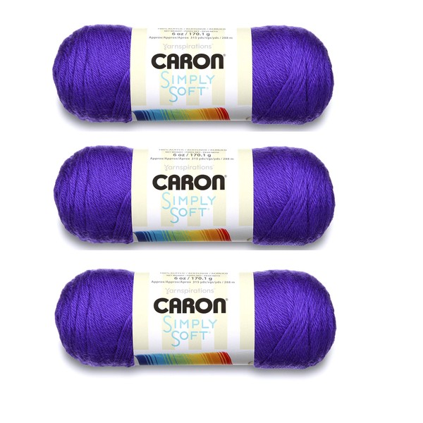 • Price is for 3 skeins of Caron Simply Soft Yarn Solids Iris H97003-9747 (UPC 035613977470) for a total of 945 yards/18oz (864 meters/510gr) knitting yarn