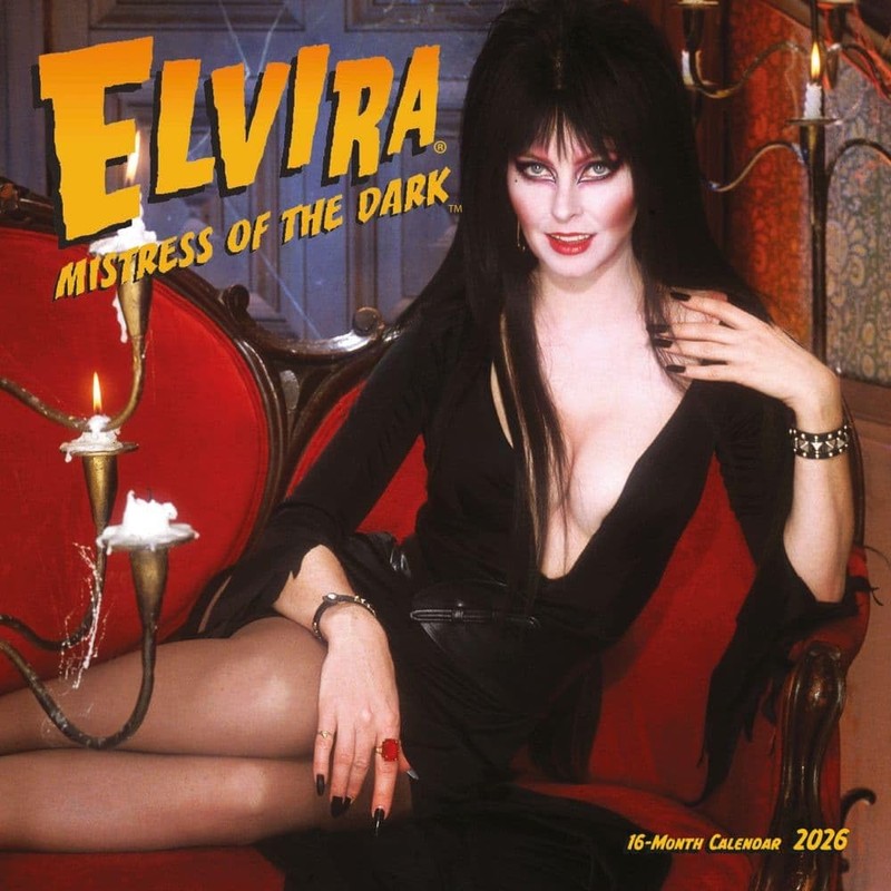 - - Elvira theme ? monthly glamorous and gothic images of Elvira, Mistress of the Dark for visual appeal. - Wall format ? monthly layout for easy wall display and quick date reference. - Ideal size ? measures 12" x 12" closed for prominent display and convenient viewing. - Stapled binding ? securely bound for durability and easy page turning throughout the year. - Full coverage ? 16 Month calendar starting 8/31/2025 with major U.S. holidays and moon phases.