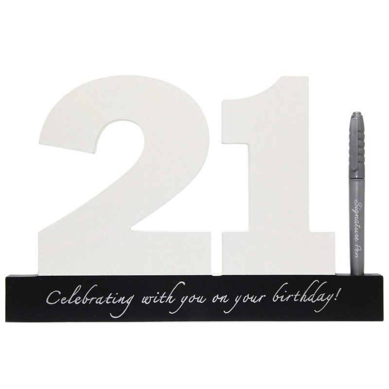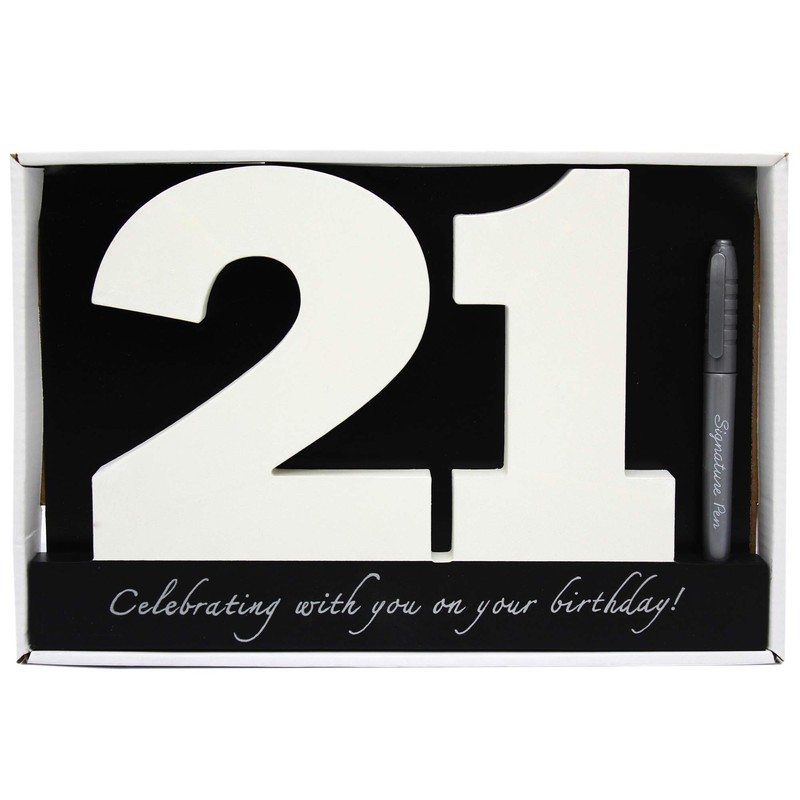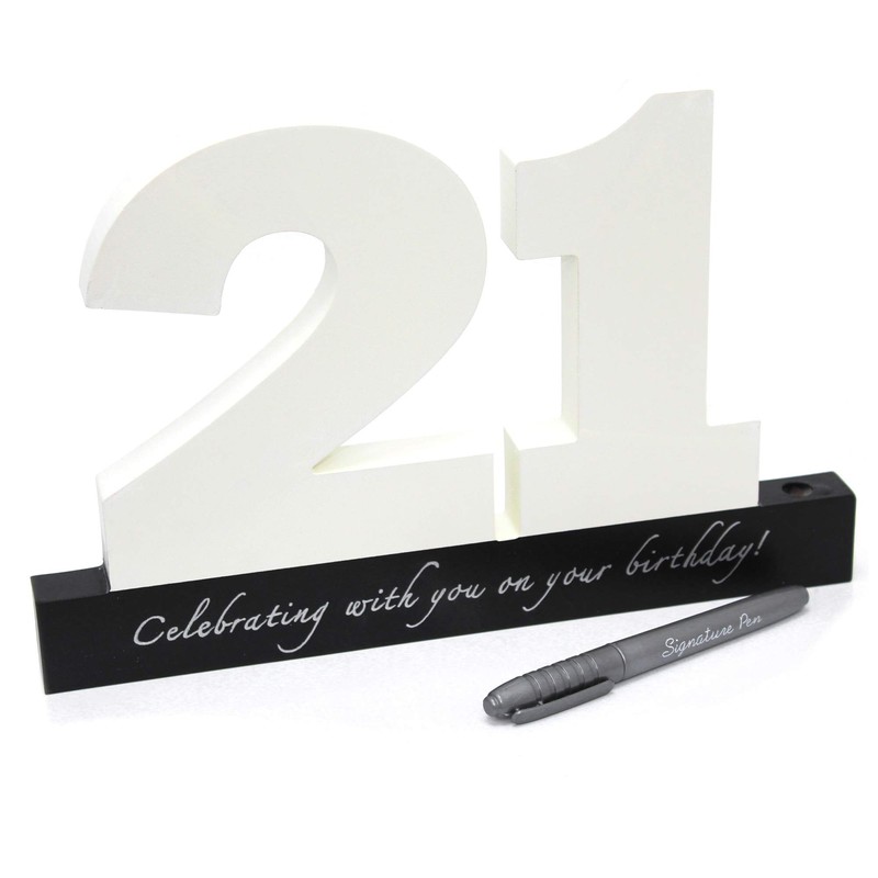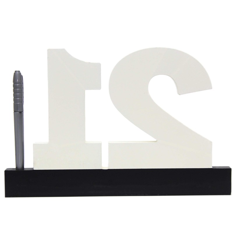 Carousel Home and Gifts Birthday signature plaque, signature numbers 21 birthday keepsake ~ White wooden number blocks with pen included, happy 21st birthday plaque, guest book sign