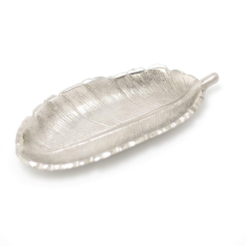 Carousel Home Gifts Stylish Silver Metal Feather Trinket Dish | Display Plate Vanity Tray | Ring Holder Jewellery Plate