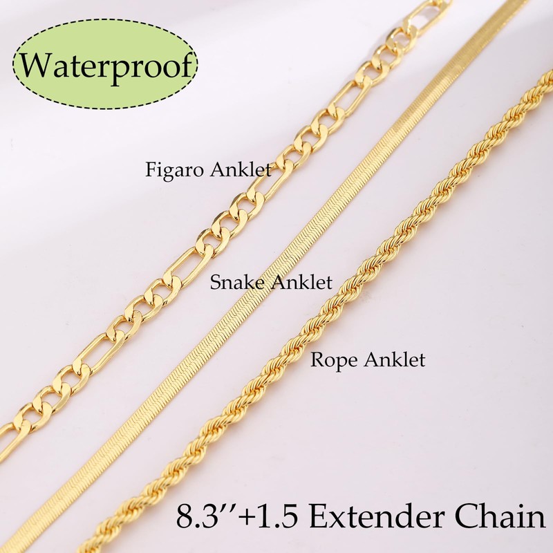 - 3PCS Ankle Bracelets:One Order include figaro/snake/twist anklet,which are suitable for layering as well as being worn alone. It is a fun piece to accessorize your summer outfits,And a cute ankle bracelet for women is a must-have summer jewelry;You can also wear this anklet on your wrist to turn it into a delicate bracelet ,Create an overall look that accentuates your figure and gives you more confidence and charm