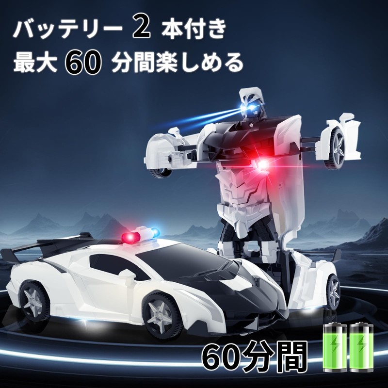 Carox OX08 RC Car for Kids, LED Included, Robot Transformation, 2 in 1 Demo Mode, 360° Rotation, 2.4 Ghz Operation, 60 Minutes, Toy, Elementary School Students, Birthday Gift, Japanese Instruction