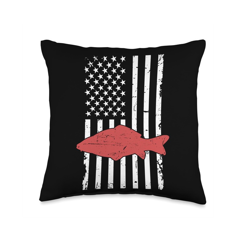 Carp Fisherman American Flag Carp Fishing Throw Pillow