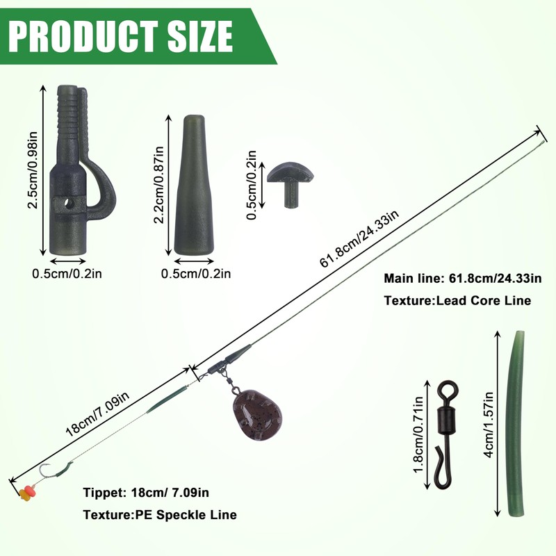 Carp Fishing Rigs Kit has a complete fishing leader line, 5 extra leader line rigs.Easy to use for quick setup and works great