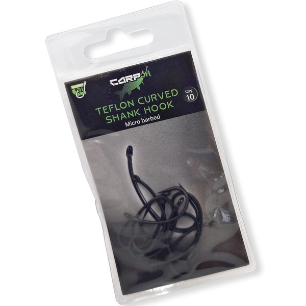 - Carp On - 10 Pack of Teflon Coated Curved Shank Eyed Fishing Hooks Micro Barbed Classic Design